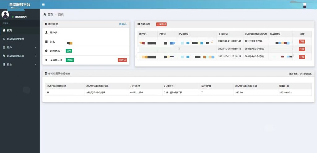 - 当你购买的是两个终端的校园网,在线信息内却出现了三个,只能说明是系统bug。
