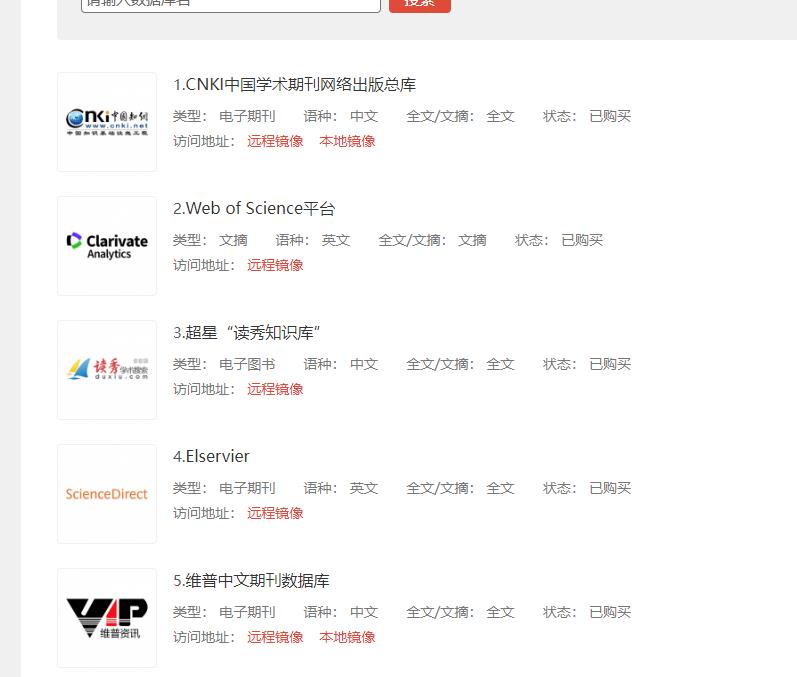 这就是校园网的最大价值,极为丰富的学术资源,我们不必再付费购买论文资料查阅。点击远程镜像,即可访问,而这只有在连接校园网的情况下才可以访问。