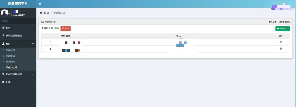 注意,如果你买的套餐是两个终端,那么最多只能添加两个无感知认证! 不然会导致设备之间的冲突,会很影响你的上网体验!