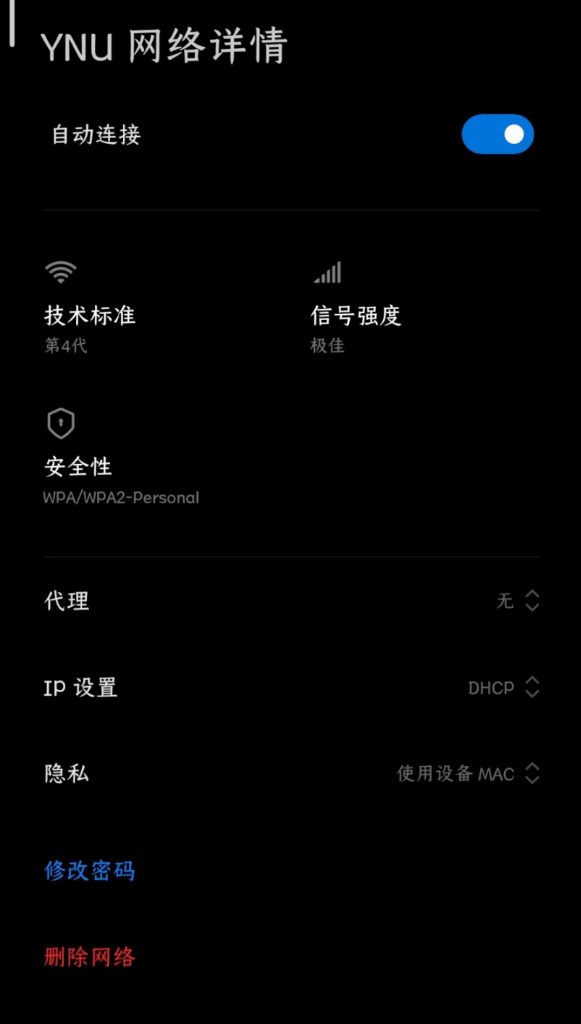 无感知认证并非对所有设备生效,如果你的设备根据此教程操作后连接校园网依旧需要认证,请检查无感知认证中的mac地址是否正确,设备的随机mac功能是否关闭。若检查无误,只能说明你使用的设备无法使用无感知认证功能。