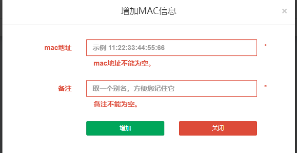 我们点击 增加mac,弹出以下界面。