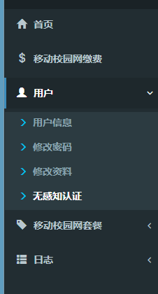 点击左侧的用户,展开二级页面后,点击无感知认证。