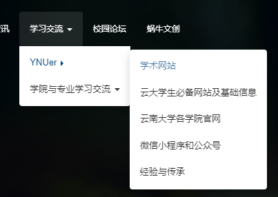 我们回到蜗牛箱的首页,点击学习交流——YNUer——学术网站